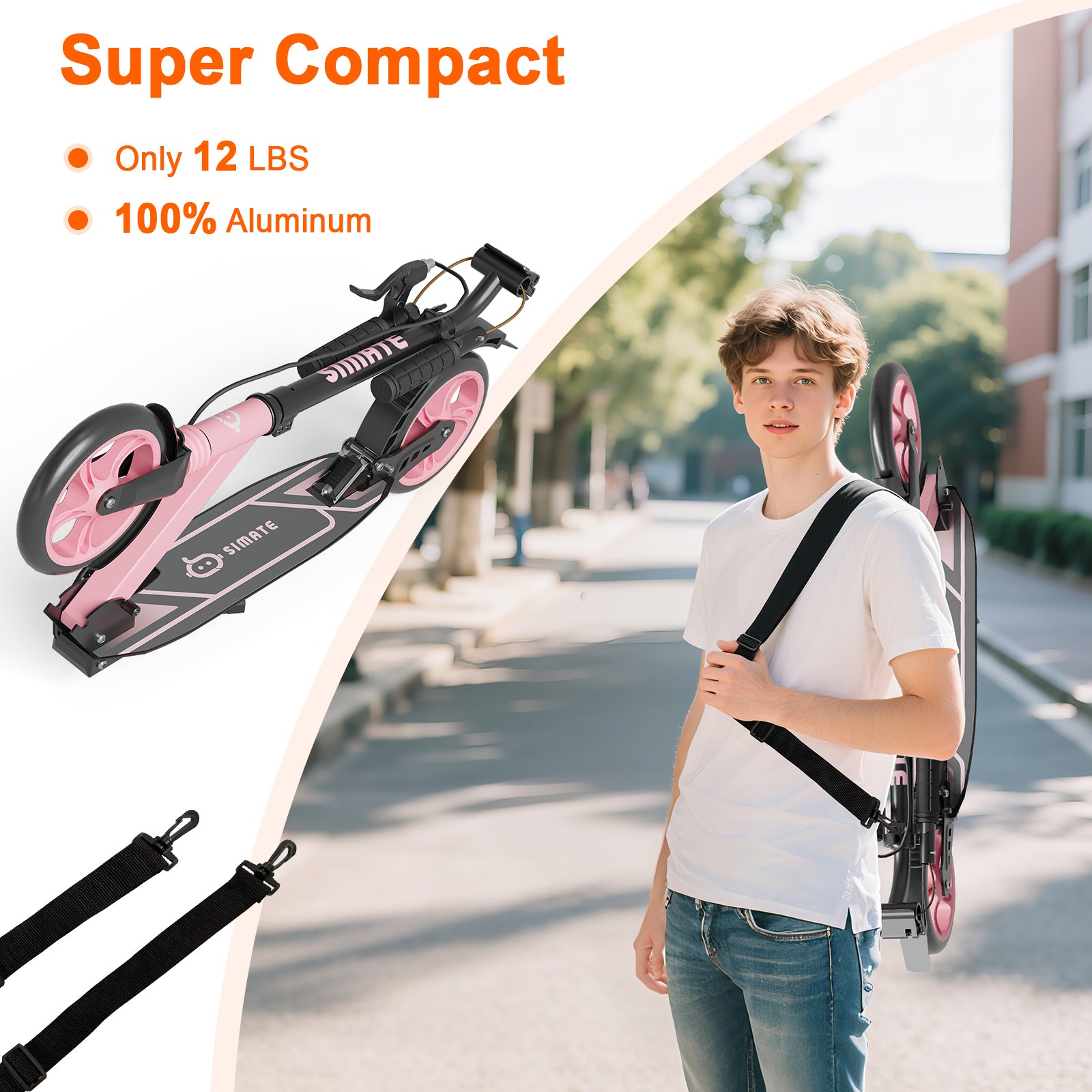 • LIGHTWEIGHT YET STURDY:Kick scooter weighs just 12 lbs (5.5 kg), portable and foldable for urban commuting or weekend adventures, featuring a military-grade aerospace aluminum frame with corrosion-resistant coating that supports up to 245 lbs and delivers 30% longer service life via enhanced fatigue resistance.